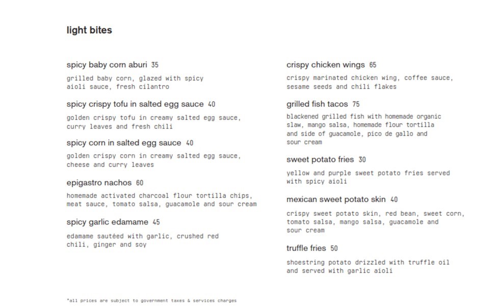 Selain unggul dari segi tampilan, makanan di sini cukup recommended. Banyak pilihan menu-menu western yang cukup menggugah selera, seperti pizza, spageti, dan roasted chicken. Selain menyajikan menu lezat yang tinggi kalori, Epigastro juga menyediakan menu-menu sehat khusus untuk vegetarian dan orang yang smelakukan diet sehat.